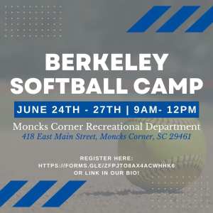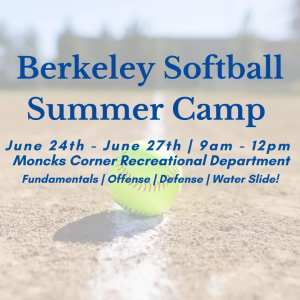 Coach Kelley Dillon, former University of South Carolina player and College of Charleston Assistant Coach and the current Head Coach of the Berkeley High School Softball program will be hosting a 4-day camp, June 24th-June 27th, 9:00am-12:00pm, that focuses on the fundamentals of softball including but not limited to offensive and defensive skills.
