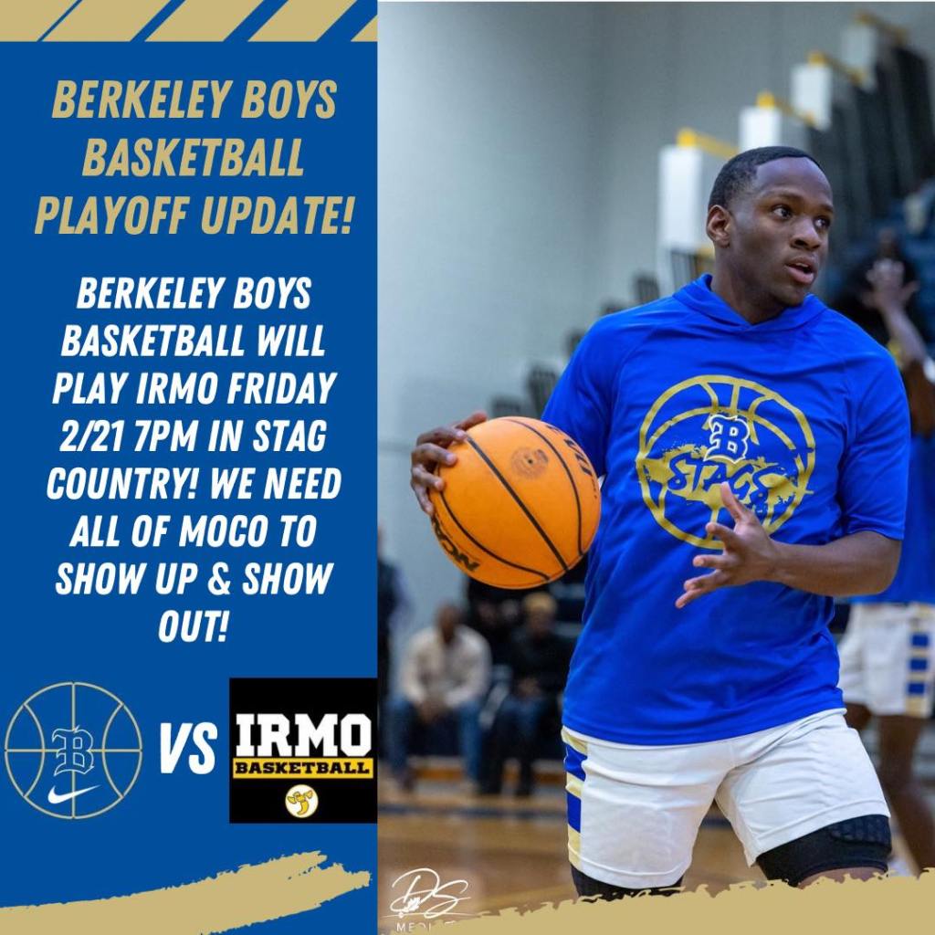 THIS FRIDAY NIGHT! Your Berkeley Boys Basketball team is hosting Irmo in the 2nd Round of the South Carolina State High School Playoffs! 🏆💪