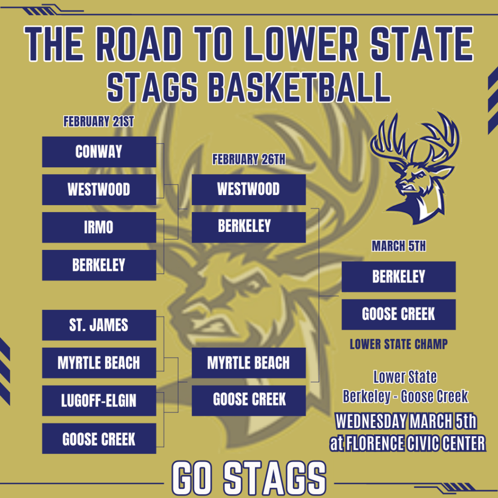 It all comes down to this! Today is the day – Lower State Championship featuring BOTH our Lady Stags and Berkeley Boys Basketball teams at the Florence Civic Center!