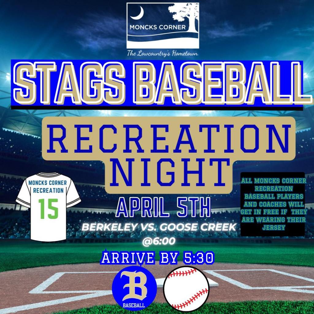 #GoStags #BerkeleyStags #StagBaseball #YouthNight #FutureStags #OnceAStagAlwaysAStag #GameDay #RegionRivalry #MoncksCornerRec