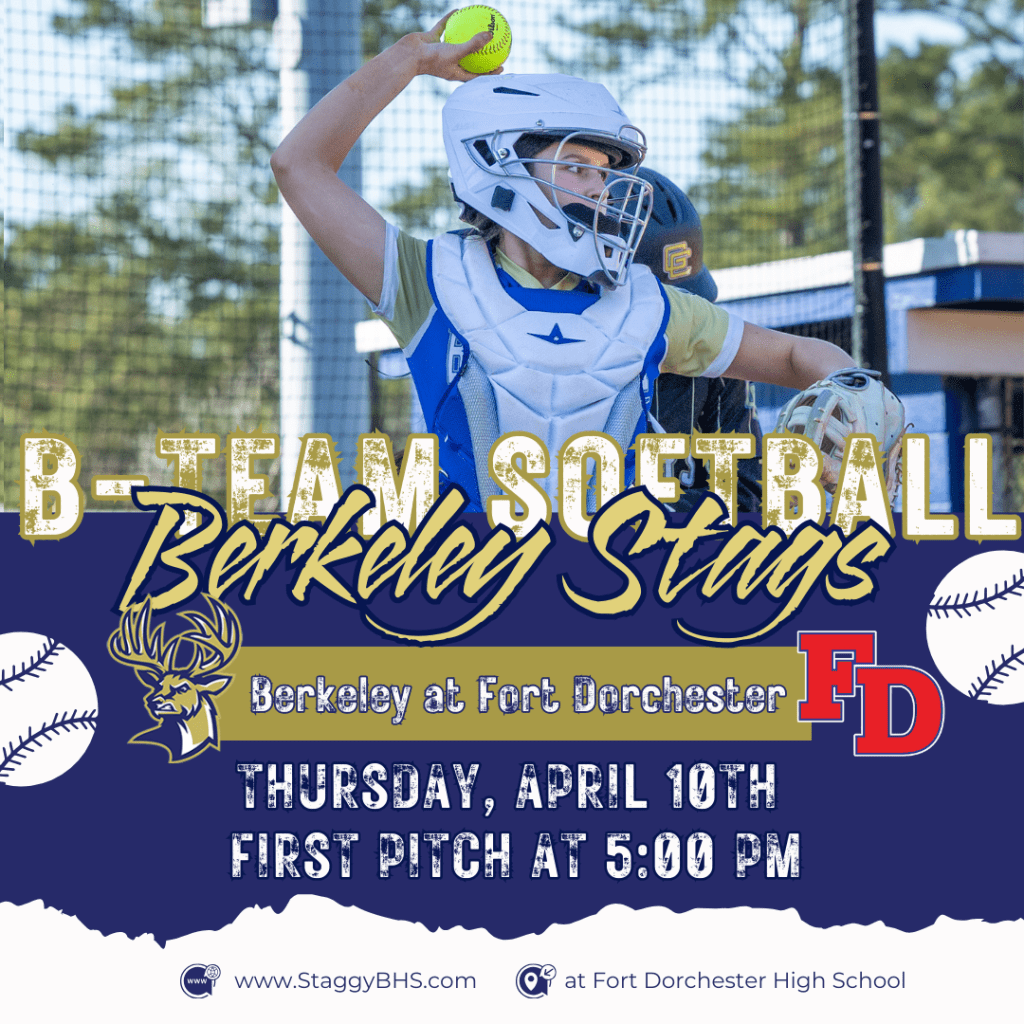 Stag Nation, get ready to rally behind our Berkeley Stags! Our B-Team & Varsity Softball teams are headed to Fort Dorchester High School for an intense regional matchup on Monday, April 7th. The action kicks off with the B-Team team at 5:30 PM and the Varsity squad at 7:00 PM.