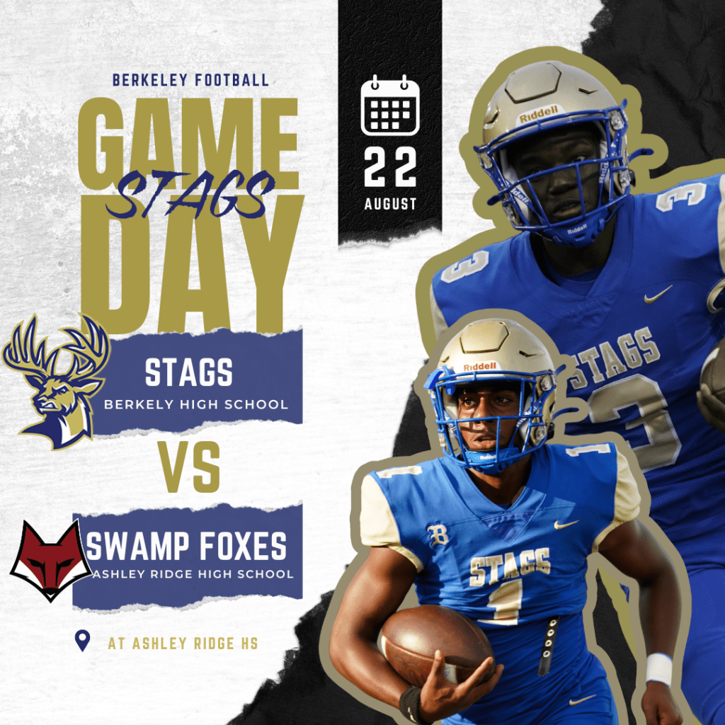 The wait is over, Stag Nation — Friday Night Lights are back! Join us on the road as our Berkeley Stags Varsity Football Team kicks off the 2025 season with an exciting matchup against Ashley Ridge High School.
