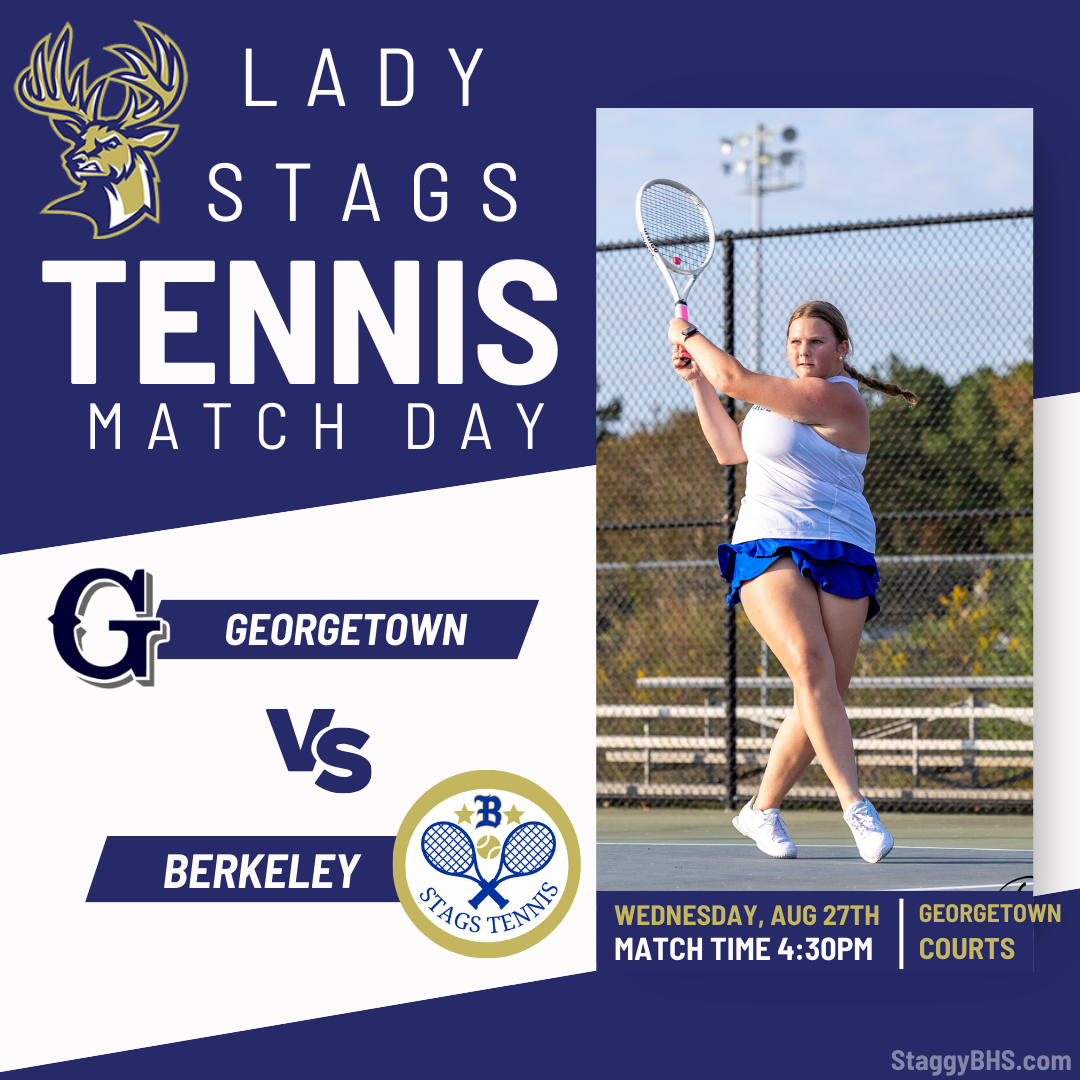 The Berkeley Lady Stags Tennis Team is back on the road! On Wednesday, August 27th, 2025, our Lady Stags will head to Georgetown High School for an exciting matchup. First serve is set for 4:30 PM.