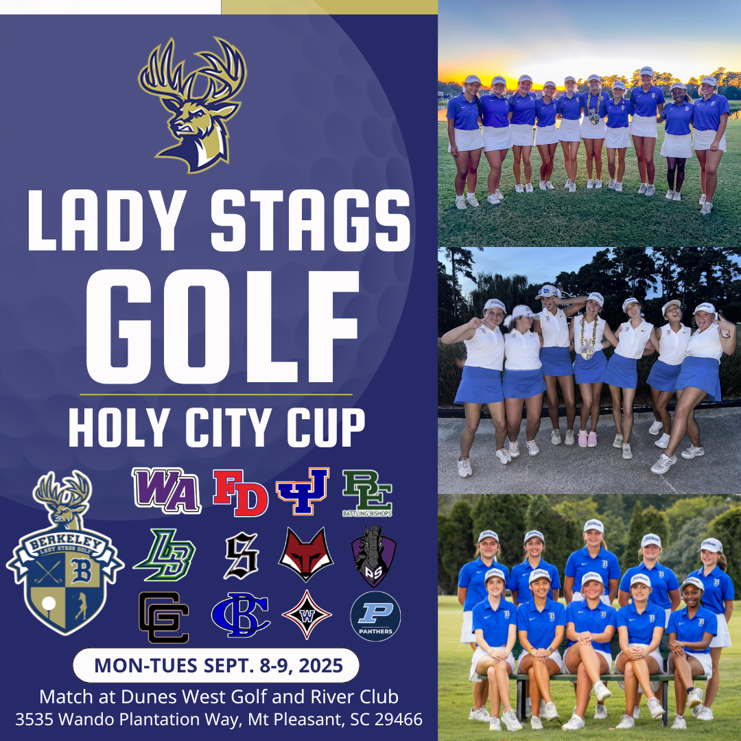 The Berkeley Lady Stags Golf team is set to compete in the Holy City Cup Golf Tournament on Monday and Tuesday, September 8–9 at the beautiful Dunes West Golf Club. This event will feature some of the best lady golfers from across the Lowcountry, making it an exciting showcase of talent and competition.