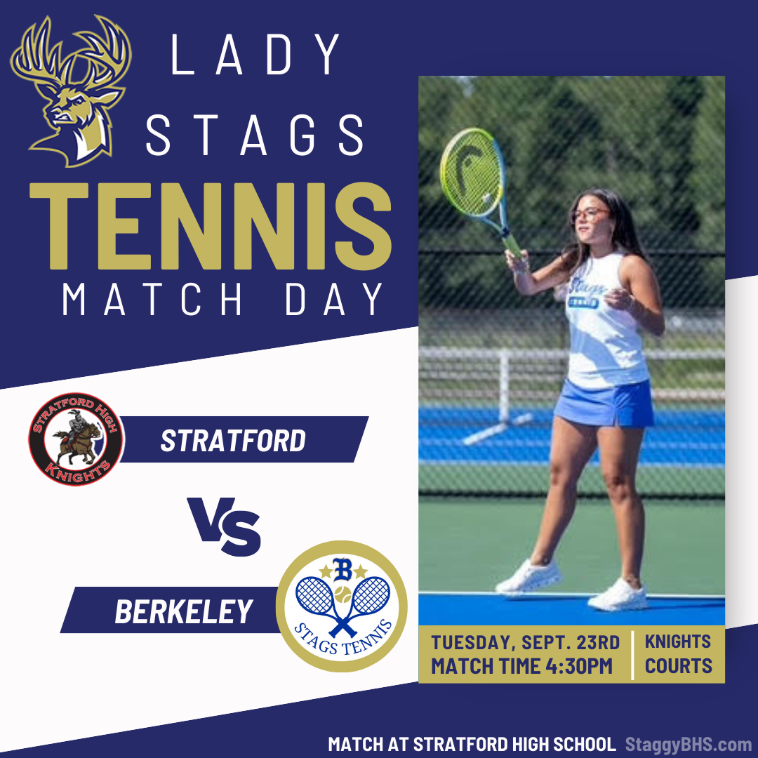 The Berkeley Lady Stags Tennis team is hitting the road to face the Stratford Knights! On Tuesday, September 23, matches begin at 4:30 PM, promising an exciting showdown on the courts.