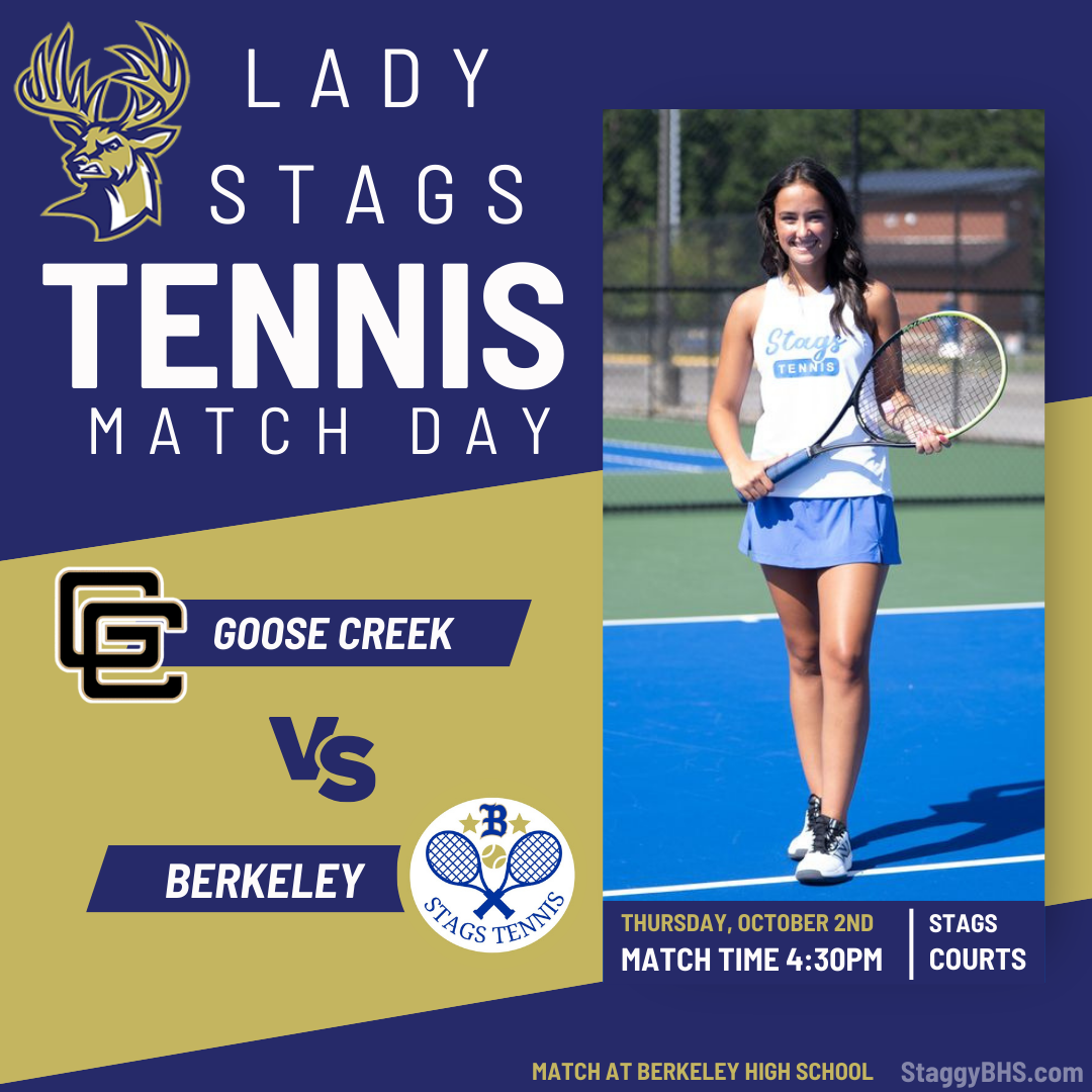 The Berkeley Stags JV and Varsity Tennis teams are back in action, hosting Goose Creek on Thursday, October 2nd! Match play begins at 4:30 PM on our very own Stags Courts. 💙💛