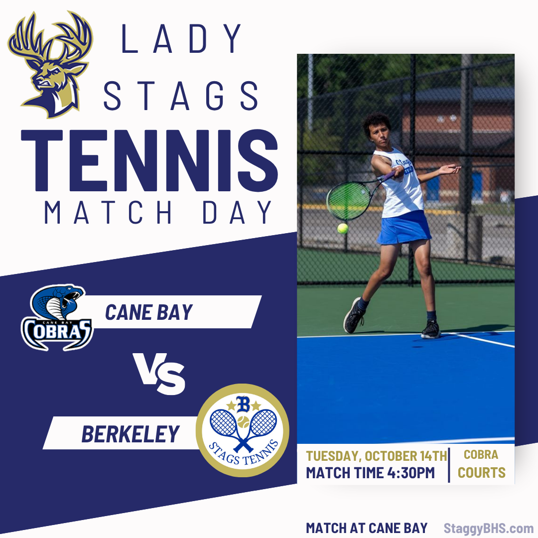 Show your support for our Berkeley High School Stags Tennis Team as they hit the courts at Cane Bay on Tuesday, October 14th! Our athletes have been working hard all season, and now it’s time to rally behind them as they compete with determination, focus, and Stag pride.