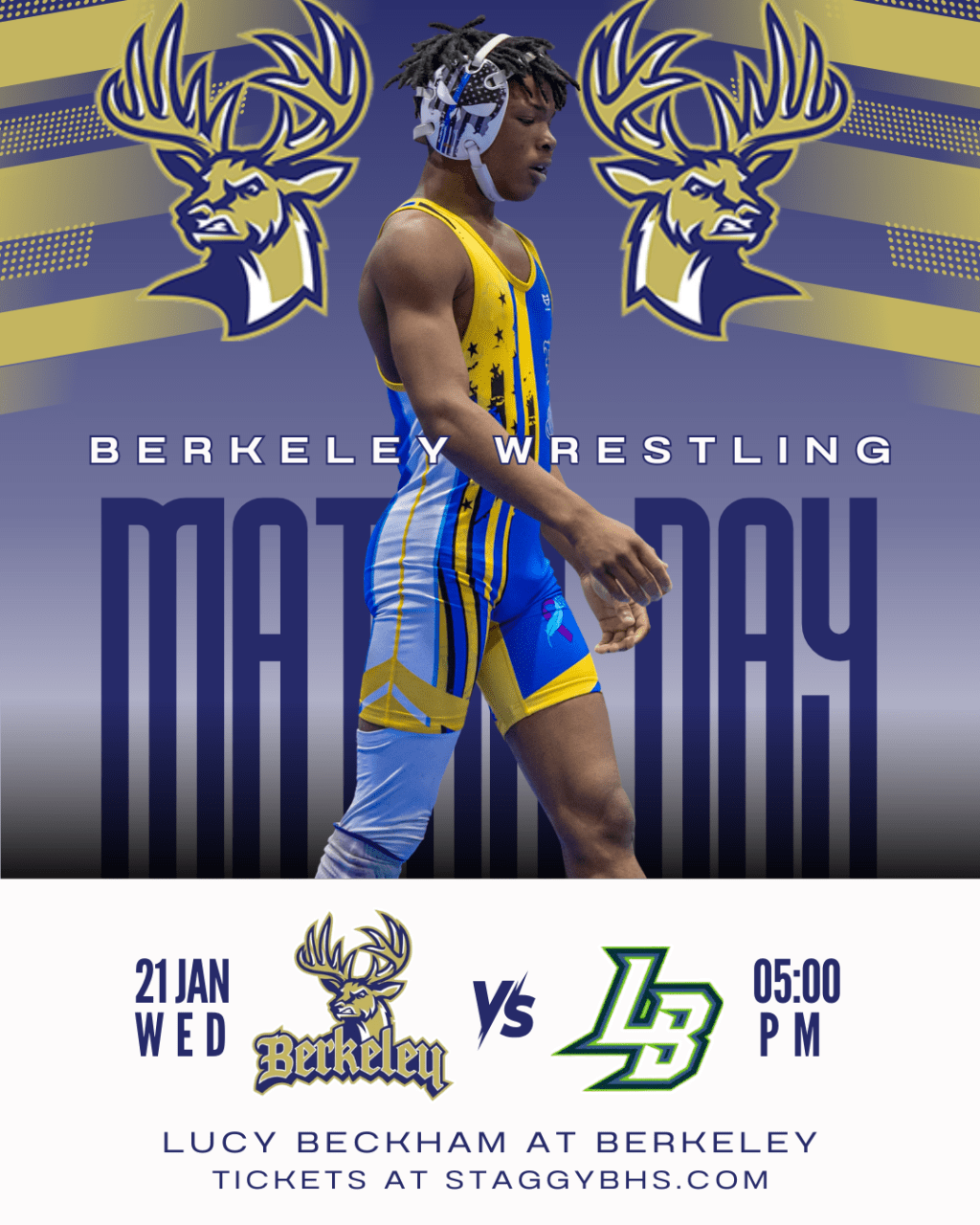 The mats are rolling back out at Berkeley as Stags Wrestling hosts Lucy Beckham for an exciting region matchup you won’t want to miss! The night will feature JV, Middle School, and Girls matches beforehand, setting the stage for a high-energy varsity showdown.
