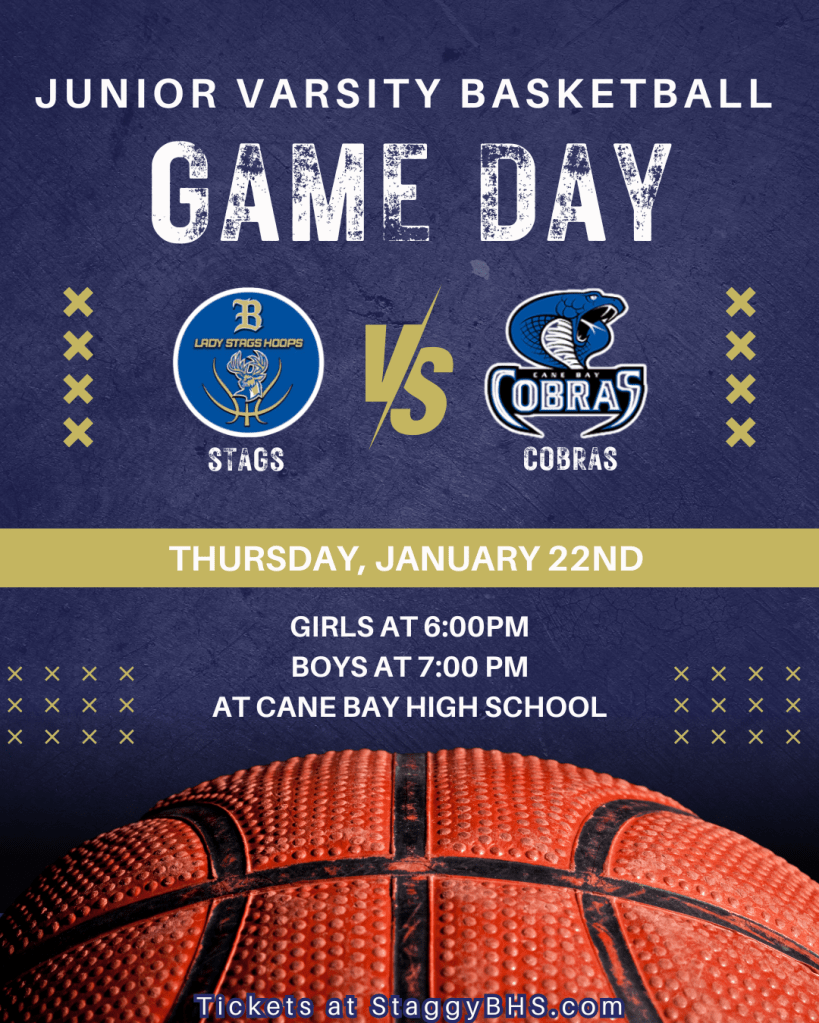 It’s a busy night of basketball on the road as Berkeley Stags JV Basketball travels to Cane Bay on Thursday, January 22nd for a triple-header matchup featuring the B-Team and JV squads.